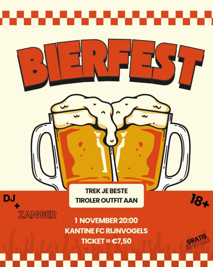 Zaterdag 1 november is het weer zo ver, het bierfest. Vanaf 20:00 is iedereen met een kaartje welkom. Let op alleen 18+.