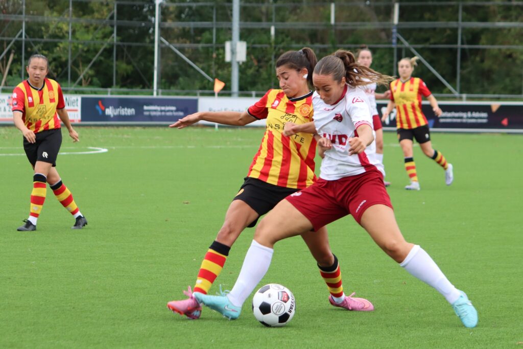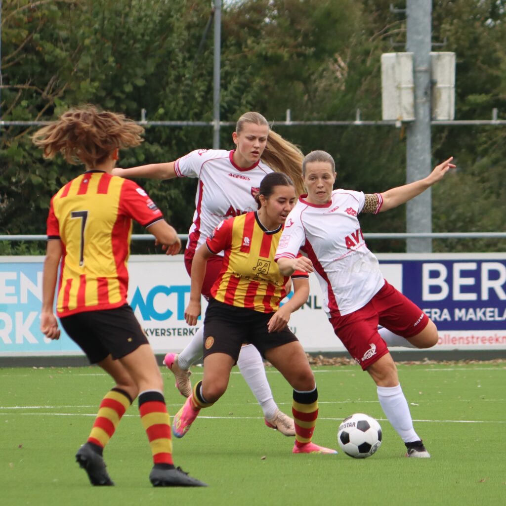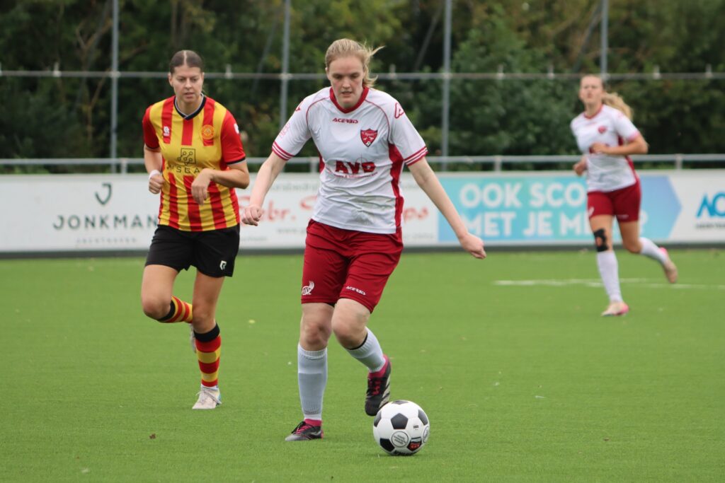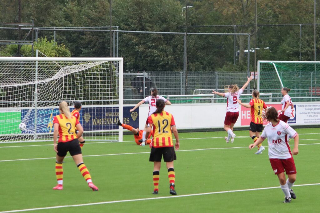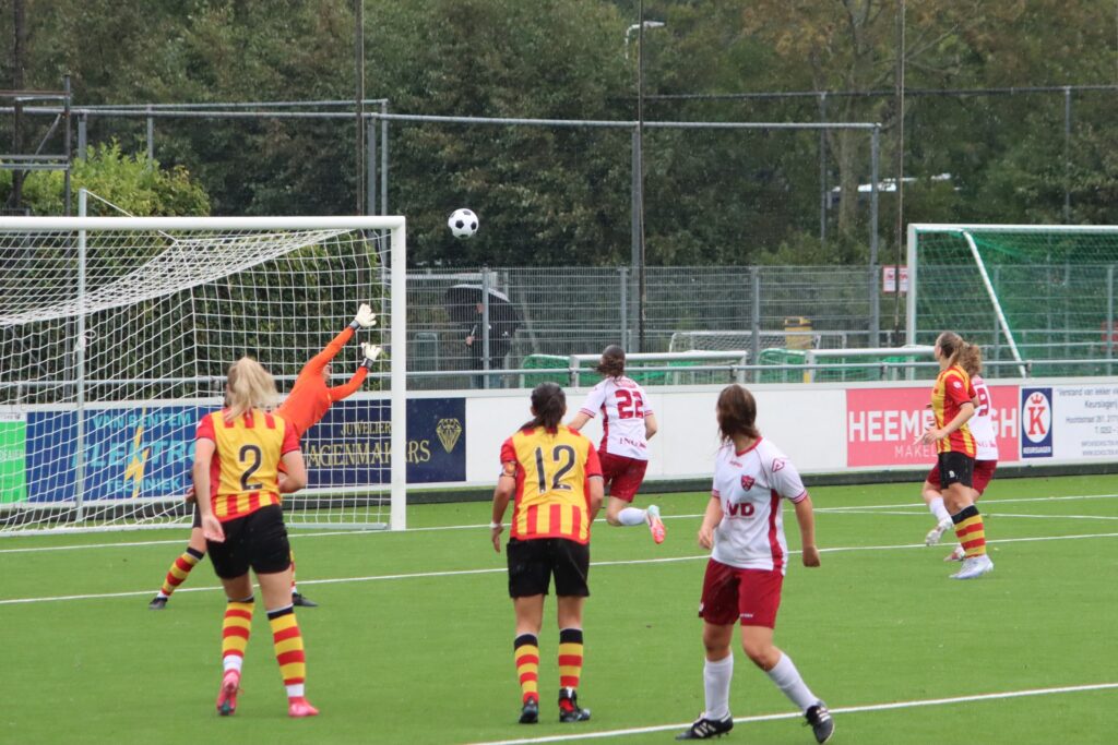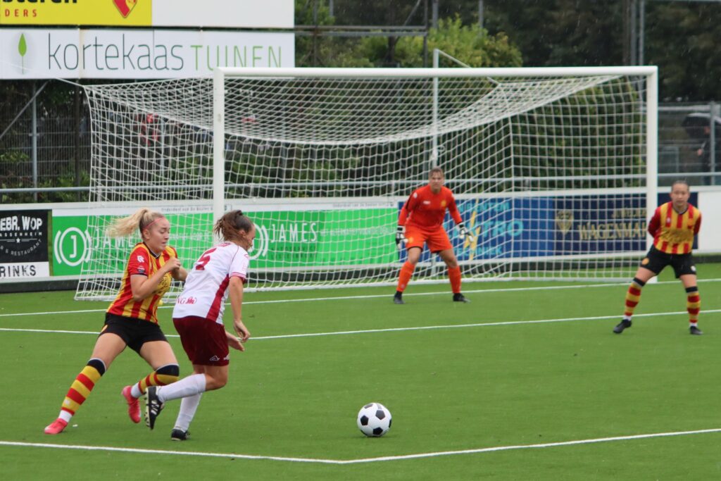 In de tweede helft hebben we een aantal wissels doorgevoerd om de achterstand zo snel mogelijk weg te werken. We bleven druk zetten op de achterhoede van Ter Leede, en in de 70e minuut was het Nikki Ridder die met een prachtige, indraaiende bal de verre hoek vond en de bal over keepster Naomi Linssen heen schoot: 1-1.