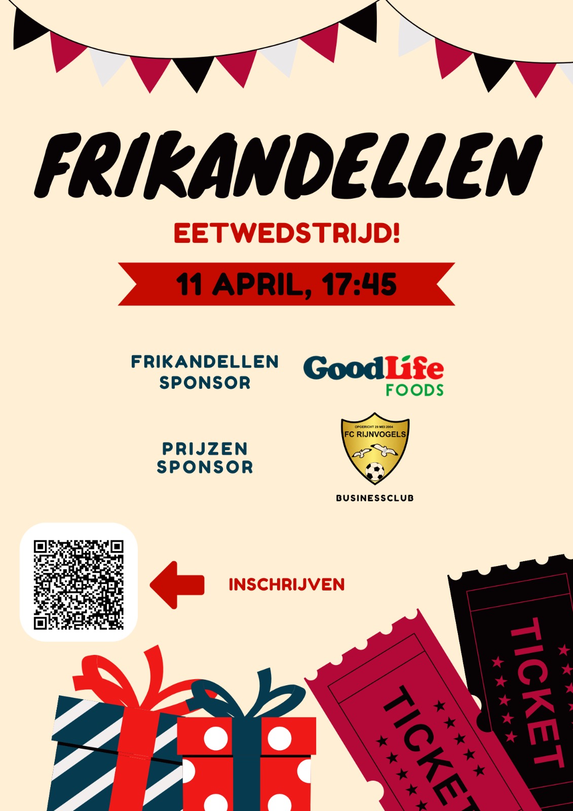 Zaterdag 11 april is iedereen welkom om deel te nemen of om te kijken naar de frikandellen eetwedstrijd. Om 17:45 uur is iedereen van harte welkom in de Kantine op Sportpark de Kooltuin.