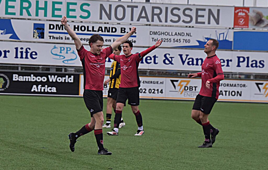 Het team van trainer Roy Mulder begon gretig aan de wedstrijd. Binnen het kwartier lagen er al twee in het mandje van doelman Axel Ruesen. Eerst schoot Jan van Duijn de schilvers nog van de bovenkant van de lat af maar de 1-0 zat er aan te komen. Een slimme vrije trap van Daan Luyten werd door Tim Otten zo leek het binnen geknald maar verdediger Dion Heemskerk eiste de treffer voor zich op omdat hij het laatste en belsissende tikje had gegeven. Doet er niet toe. De 1-0 was geboren en de tweede liet niet lang op zich wachten. Na goed voorbereidend werk van Niels Meyvogel rondde Dan Luyten het klusje van dichtbij simpel af. Binnen een kwartier op rozen maar die gingen wat slapjes hangen toen de Vogels wat gas terug namen en de opponent wat meer in de wedstrijd liet komen zonder overigens de thuisclub het op de zenuwen liet krijgen. Na een lange radiostilte knalde kort voor de break Kevin van Mil de 3-0 binnen en de buit leek hiermee vroegtijdig al in de tas.