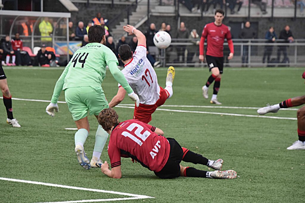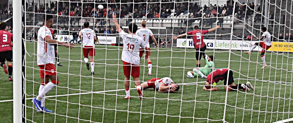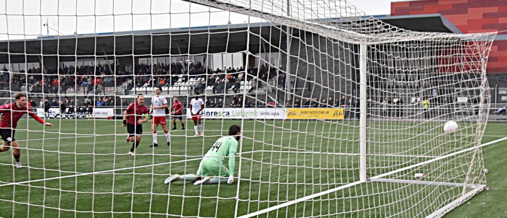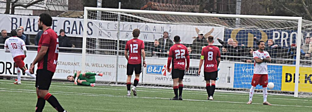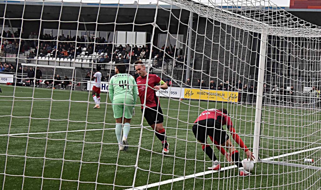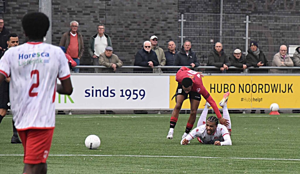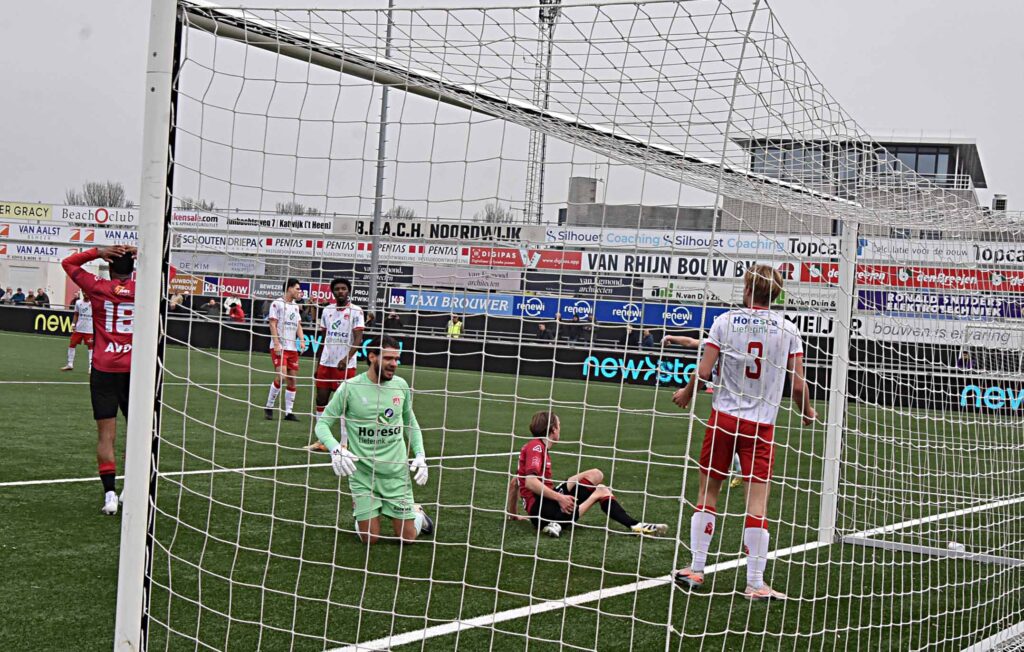 Noordwijk uit. Ongeacht hun stand op de ranglijst is het voor de Katwijkers per traditie een uitbeurt waar nauwelijks iets te halen valt. Ook nu niet ook al viel de score in de slotfase wel redelijk hoog uit en dropen de roodhemden met een 4-1 pak op de broek gelaten af.