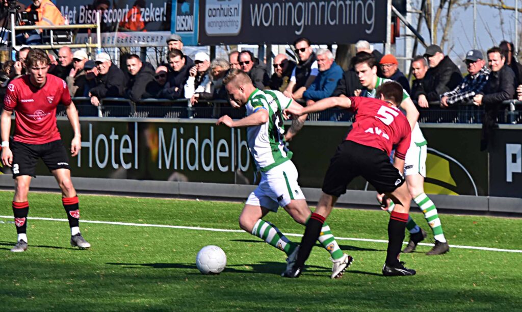 Het was bijzonder druk op sportpark Wesselo. Het dorp leek uitgelopen voor deze topper maar ook veel Katwijkers waren naar het Zeeuwse afgereisd om een pittige pot te aanschouwen. De belangen van de beide teams waren duidelijk herkenbaar en arbiter Willen Kuijntjes had er bij tijd en wijlen de handen vol aan om binnenbrandjes te blussen.