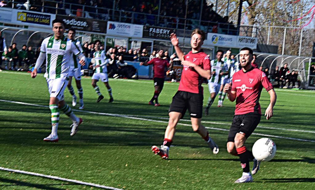 De thuisclub liet er van meet af aan geen (kunst)gras over groeien en zette de toon. Het was een wonder dat de Katwijkers er voor half-time ongeschonden vanaf kwamen want Kloetinge miste een aantal uitgelezen kansen. Ook doelman David van de Riet had een paar knappe parades in huis. De roodhemden stelden hier aanvallend niet al te veel tegenover. Na de hervatting kwam Maxim van der Meer binnen de lijnen en het werd direct een andere wedstrijd. Niet dat alles van een man af mag hangen maar feit is echter wel dat de Katwijkers direct dreigender werden en tijdelijk de betere ploeg waren. Van der Meer zette op knappe wijze Yassin Kaabouni vrij maar die botste op Temortel. Gelukkig konden beiden het duel hervatten. FCR bleef dreigend en Kevin Gomez Nieto kopte van zeer dichtbij over en de 0-1 hing in de blauwe lentelucht maar bleef uit. Het werd weer een gelijkwaardige wedstrijd met twee ploegen die op de aanval speelden met kansen aan beide kanten en derhalve het een aantrekkelijk schouwspel werd. Ook doelman Van de Riet moest weer an de bak maar hield zijn hok voorlopig schoon. Tot in de slotfase toen hij moest zwichten voor de knappe goal van Gianni Tiebosch. Met nog een minuut of negen op de klok gaven de Vogels zich nog niet gewonnen en na een fraaie uitbraak van Maxim van der Meer leek hij de gelijkmaker op de schoen te hebben maar de schoen van sluitpost Remortel kwam als winnaar uit dit duel. Geen 1-1 dus voor een spannende slotfase want Ruben de Jager maakte kort voor het scheiden van de markt de 2-0 en bogen de Katwijkers het hoofd. De strijd in de competitie is nog niet gestreden en na een nederlaag kwamen de Vogels in dit seizoen telkens weer sterk terug. Aanstaande zaterdag thuis tegen TOGB zullen zij dit weer kunnen bewijzen.