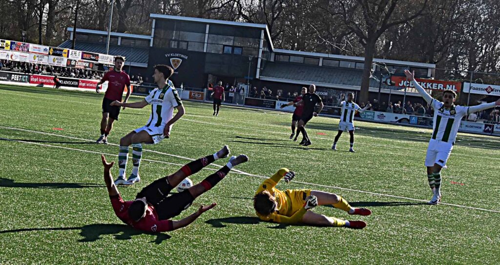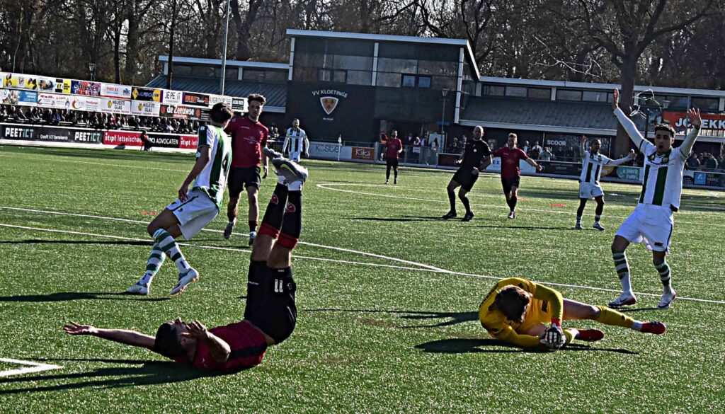 Kloetinge heeft de clash met de Vogels terecht in haar voordeel beslist. De Zeeuwen wonnen met 2-0, een overwinning die in de slotfase werd binnen gehaald. Dankzij de zeer fraaie 1-0 van Gianni Tiebosch in de kruising gevolgd door de allesbeslissende treffer van Ruben de Jager. Kort na de 1-0 leek Maxim van der Meer op weg naar de gelijkmaker maar doelman Teun van Remortel voorkwam een spannende slotfase met de voet.