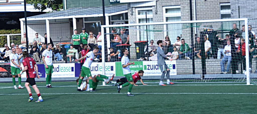 Een snelle anschlustreffer zou het duel nog spannend kunnen maken. Het kwam er vooralsnog niet van. De thuisclub kon de Katwijkse pogingen behoorlijk nivelleren en kwam zelfs op een 3-0 voorsprong waarmee de strijd logischerwijze gestreden was. In een een-tegen-een verloor Kasper Michel de timing met Jop Blijlevens en doelman David van de Riet rekende op zijn voorstopper. Beiden gingen de teil in want Blijlevens was de slimste en lobte het leer in het verlaten Katwijkse hok, 3-0. Einde verhaal? Nee, dat dus niet. Want na een goede actie van Elijah Veilland bracht Anthony Slierendrecht de hoop in de Katwijkse harten weer terug. Er volgde een hevig slotoffensief van de Kooltuinboys. Groene Ster was rijp voor de slacht. Jacco Scholten knalde de 3-2 binnen en schoot daarna vervolgens in kansrijke positie over. Doelman Mark Voss pareerde een aantal inzetten van de Katwjkers maar de verdiende gelijkmaker bleef uit. Derhalve liepen de Vogels tegen hun onnodige eerste nederlaag op mede dankzij eigen defensieve fouten en het geluk dat in de slotfase hen in de steek liet.
