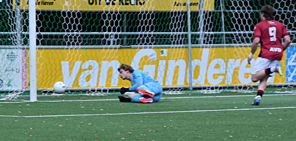 Even leek de thuisclub na de pauze de boost hebben gevonden maar de vogeldefensie ontzenuwde de aanvallende intenties van de gastheren. De Vogels hadden de zaakjes onder controle en bouwden geduldig op naar een voorsprong. Die kwam er ook omdat Dain van der Meer zo ongelukkig was om Boris van der Wiel binnen de zestien onderuit te schoffelen. Koren op de molen van naamgenoot Maxim van der Meer om vanaf de kalkstip doelman De Koning volkomen kansloos te laten, 1-2. Later in de wedstrijd had de voor Van der Meer ingevallen Sven Koppenol de wedstrijd wederom vanaf de kalkstip definitief kunnen beslissen maar de stand-in knalde wild over zodat de slotfase nog onnodig spannend werd. Voordien overleefde doelman Thijmen de Koning nog enkele hachelijke momenten voor zijn veste. Ondanks verwoedde pogingen van de thuisclub lukte het hen niet om de degelijke Katwijkse defensie nogmaals een loer te draaien. In de dying seconds kreeg Sven Koppenol nog een ultieme mogelijkheid op de 1-3 na een panklare assist van Jacco Scholten maar de invaller had zijn dag niet en miste van zeer dichtbij. Door deze overwinning blijven de Vogels koploper op doelsaldo. Niemand had dit voor de aanvang van de competitie durven voorspellen.