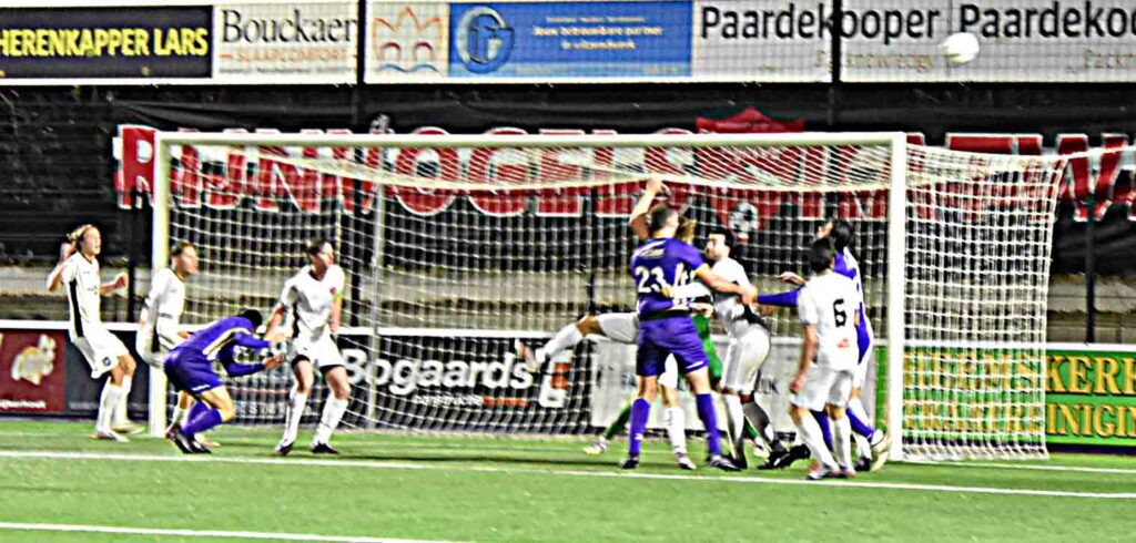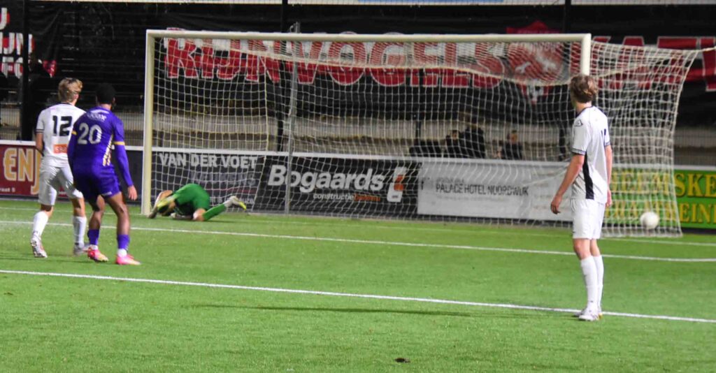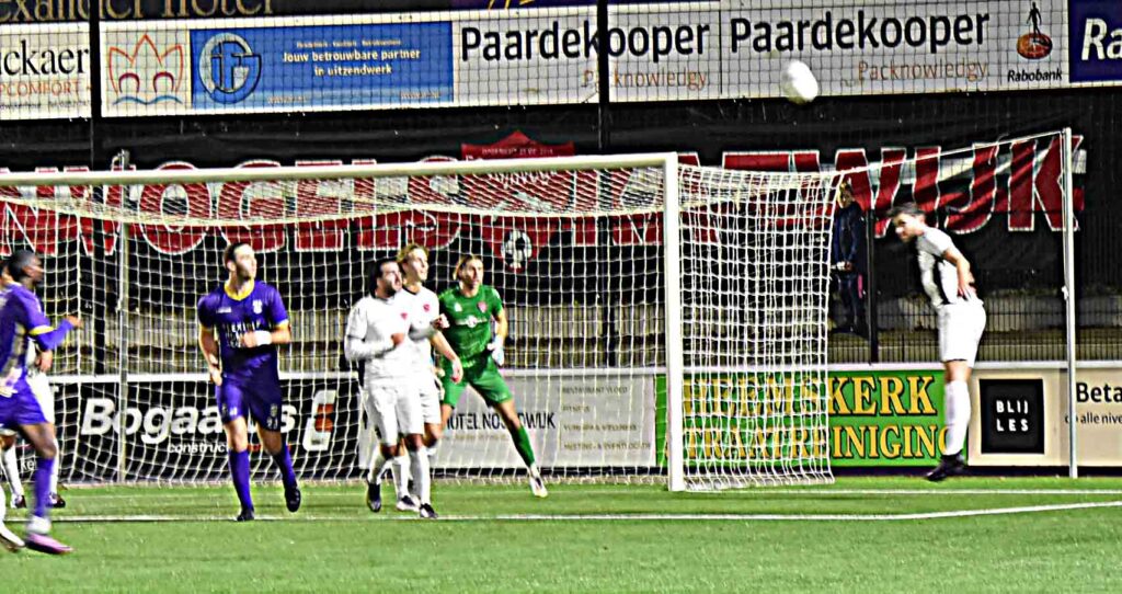 Zoals de recente historie al bewees zou dit een wedstrijd worden waarin soswieso doelpunten zouden vallen. Simpelweg omdat beide teams altijd aanvallend voetbal willen spelen. In de aanval van de Vogels werd topscorer Maxim van der Meer node gemist en omdat de – vandaag witte defensie – er in het eerste bedrijf niet altijd even jofel uitzag werd het uiteindelijk een verdiende nederlaag. Doelpunten ja, die kwamen er al vroeg in de wedstrijd. Een lastig schot van Ricardo van Kuyvenhoven werd door doelman David van de Riet gepareerd maar de rebound was voor de meegekomen Guus Verver, 1-0. Het Katwijkse antwoord liet echter niet lang op zich wachten. Na een aanval over rechts was het Zion Valies die met een prachtige uithaal goalie Marijn van Wandelen kansloos liet. De balans was echter van korte duur in evenwicht. Riskant uitverdedigen van een collega bracht Dennis van der Plas in een lastige situatie waarin hij aan de noodrem moest trekken. Routinier Gyliano van Velzen schoot de pingel onberispelijk in de hoek daar waar doelman David van de Riet de andere hoek koos, 2-1. De Vogels weer achter de feiten aan maar de gastheren geraakten in een flow na dit presentje en de bezoekers kwamen er nauwelijks meer aan te pas. Uit een hoekschop mocht de ongedekt staande Tobias Kleijweg de bal op zijn slof nemen en de 3-1 lag in het Katwijkse mandje. Het is dat Van de Riet er nog een paar uit wist te ranselen en zo de schade tot aan de pauze niet verder op liet lopen.