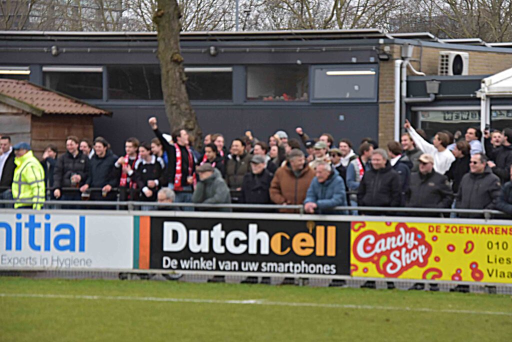 Volop vreugde en ontlading bij de Katwijkse aanhang die rijk vertegenwoordigd was en zich verbaal ook op een positieve wijze liet gelden. Het leek een horror scenario te worden en ieder hield de adem in in die wat de fatale 86e minuut had kunnen worden. Opluchting na de knappe parade van hun doelman. Het venijn van dit treffen zat duidelijk in de staart. In het eerste half uur waren de Vogels de betere ploeg met de beste kansen na vooral veel aanvalsopzetten over de rechterflank. Boris van der Wiel- luid toegezongen door de fans- was dichtbij de openingstreffer en Dennis van der Plas kopte na een corner net over. De thuisclub stelde daar een aantal lange ballen tegenover maar de Katwijkse defensie gaf vooralsnog geen krimp. Tegen het verstrijken van het eerste bedrijf kwamen de zaken anders te liggen toen de gastheren gevaarlijker werden. Van de Riet moest redden en even later zijn verdedigende kompanen eveneens. De break brak aan met een blanco stand.