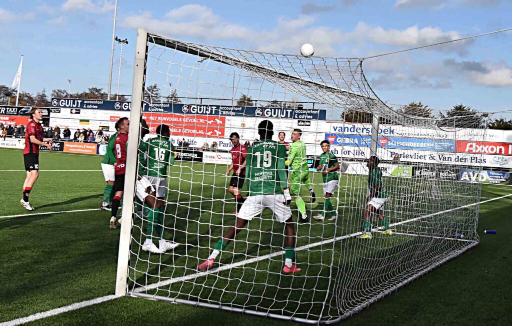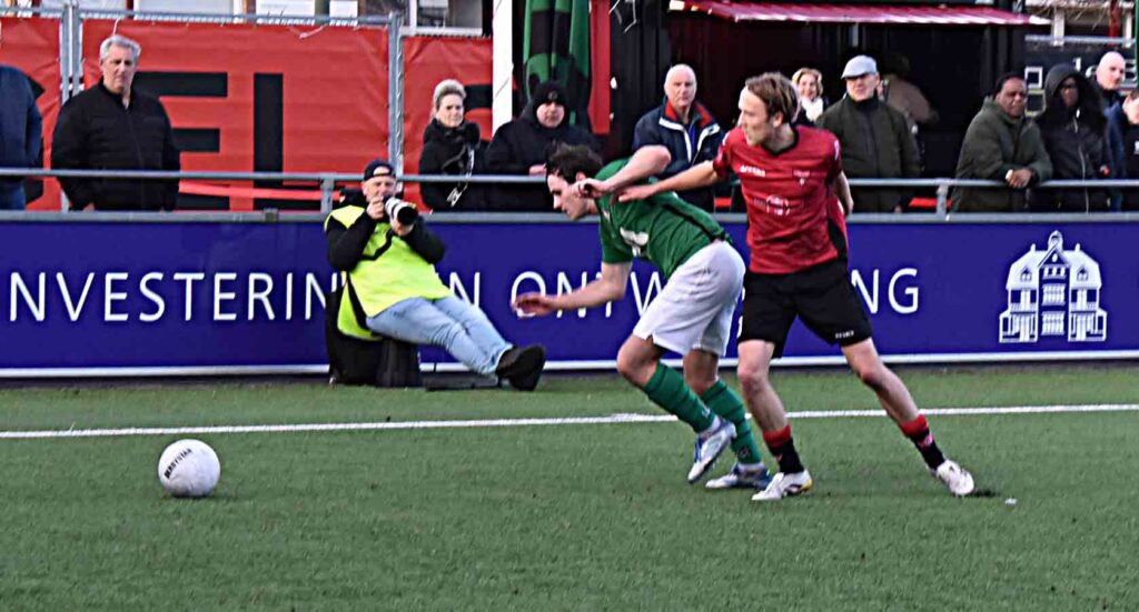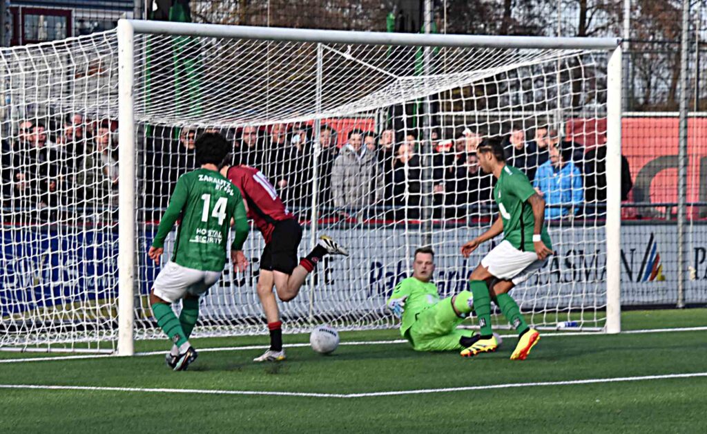 ´De hoeveelste nul van dit seizoen was het David?”. “Ik denk de zevende of de achtste’. Het bleek de zevende te zijn (red.). Zijn visie over de gewonnen wedstrijd. “Het was er moeilijk doorheen komen met vijf verdedigers. Wij moesten het spel maken en zij loerden op de counter met hun sterke spits. Uiteindelijk hebben wij weinig weg gegeven tegen deze stugge ploeg en hebben wij er ons goed onderuit gevoetbald. De eerste helft hadden wij het er moeilijk mee maar in de tweede helft ging het veel beter. De afspraken werden nagekomen en het kwam er ook uit. Wij verdienen de plek waar wij nu staan en hebben en hecht team’ was zijn conclusie na afloop van het gewonnen duel.