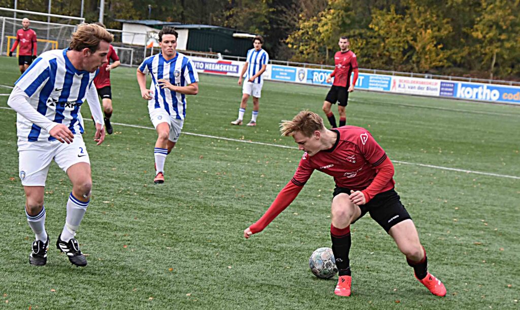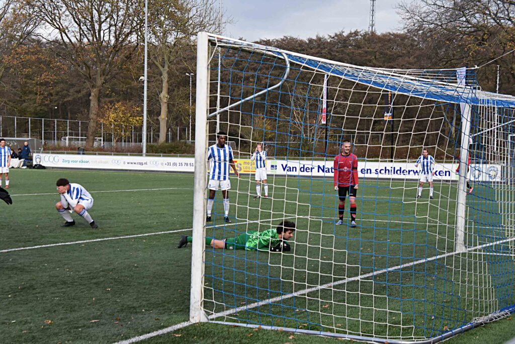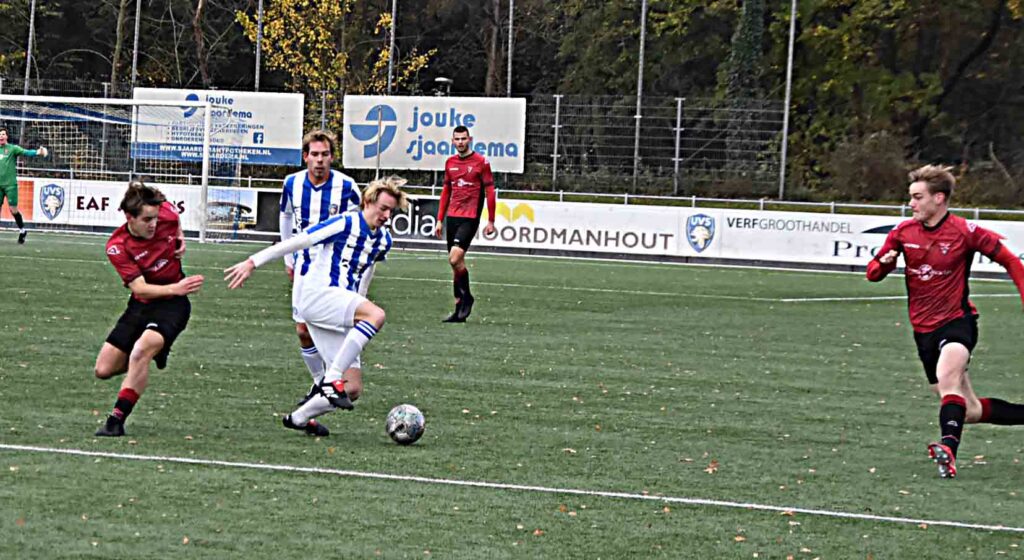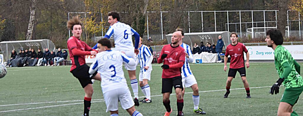 Maar goed, eerst moest er nog ‘eventjes’ bij UVS worden gewonnen. Een sterke middenmoter en dat bleek wel in de eerste helft waarin de roodhemden niet het allerbeste uit zichzelf wisten te halen. De thuisclub oogde af en toe beter dan de Katwijkse formatie. Het werd een vrij vlakke vertoning zonder veel hoogtepunten en bloedstollende momenten voor beide doelen. Creativiteit was helaas ver te zoeken, zeker in de eerste rondgang waarin de gastheren de score toch openbraken. Luca van der Horst was de scherprechter die Pieter Plug liet vissen. Op slag van rust moest zijn collega, Luc van Belen dit ook. Hij werd op schlemielige wijze door een eigen verdediger gepasseerd en dat was voor de Vogels een behoorlijk mazzeltje om er weer in te gaan geloven.