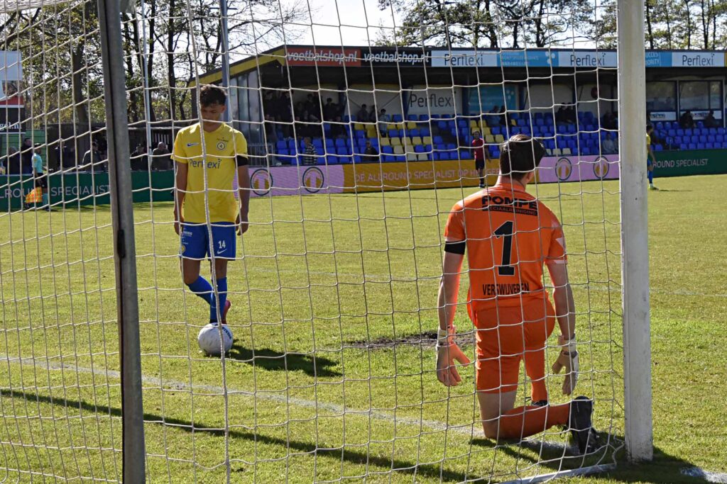 Scoreverloop. 29. 0-1. Koeleman e.d.. 45. Kaabouni 0-2. 78. Stroo 1-2. 89. Van der Meer 1-2. 90+5 Charai 1-4.