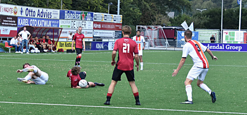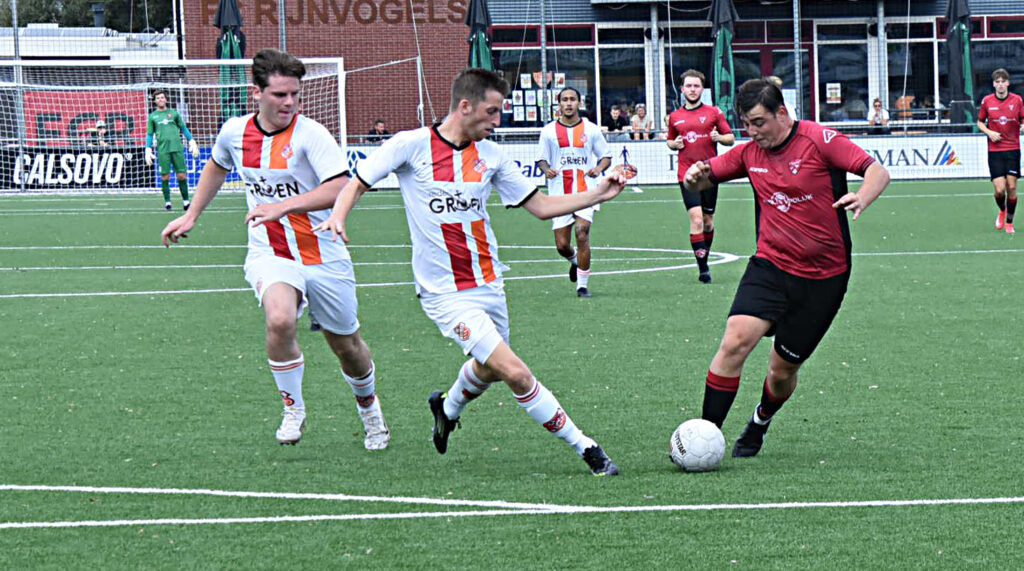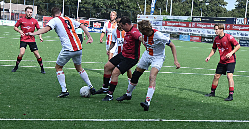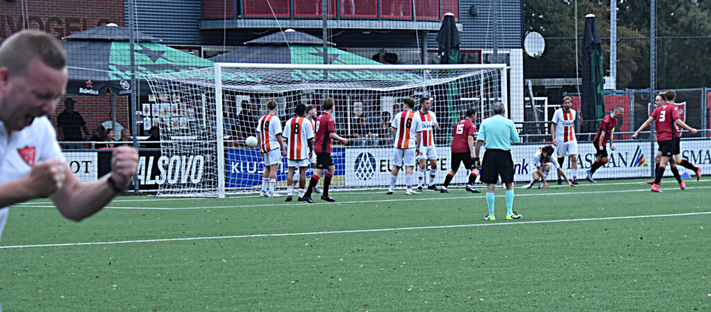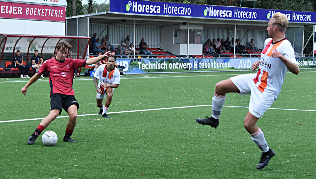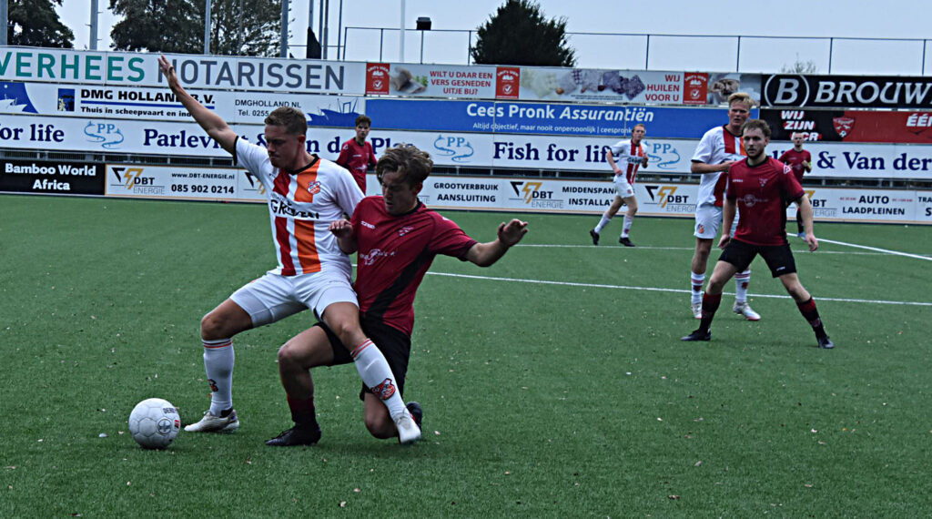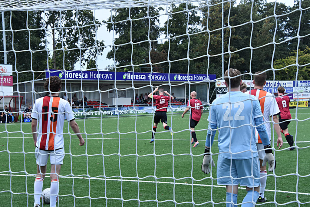 Uiteindelijk werd het halverwege het tweede bedrijf terecht 3-1. Er waren wel veel kansen voor nodig maar Kranendonk keerde een kopbal van Dion Heemskerk op knappe wijze om maar eens een voorbeeld te noemen. Er werd goed over de vleugels gespeeld en het spel zag er zeker in de tweede helft verzorgd uit. Uit een van de vele corners was het raak. Tim Otten krulde hem voor en na de verwarring die er voor de vijandelijke veste ontstond poeierde Joah van Duijn de 3-1 binnen. De thuisclub kroop vervolgens nog door het oog van de naald en ontsnapte aan de 3-2. Smetje op de zege was dat Dion Heenskerk in de slotfase met rood iets eerder mocht gaan douchen dan zijn makkers.