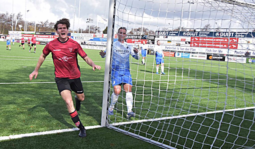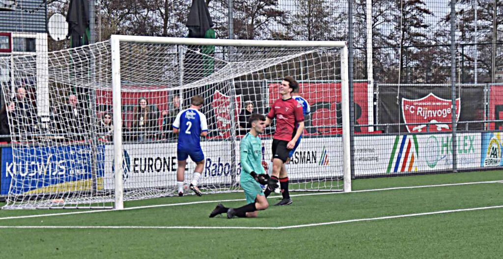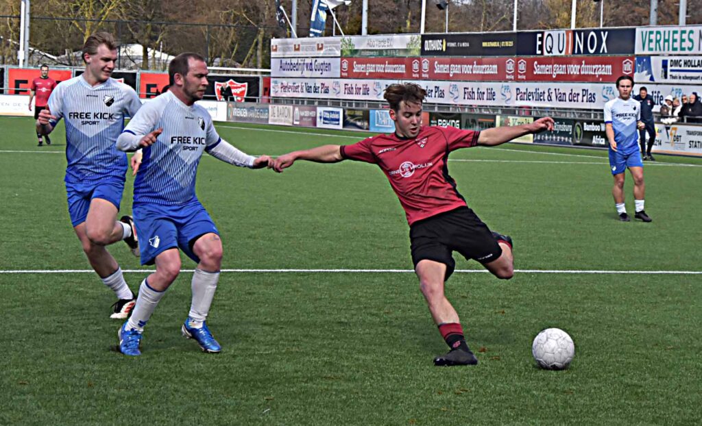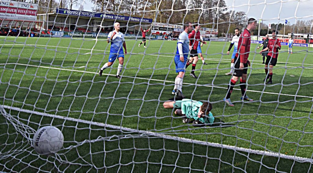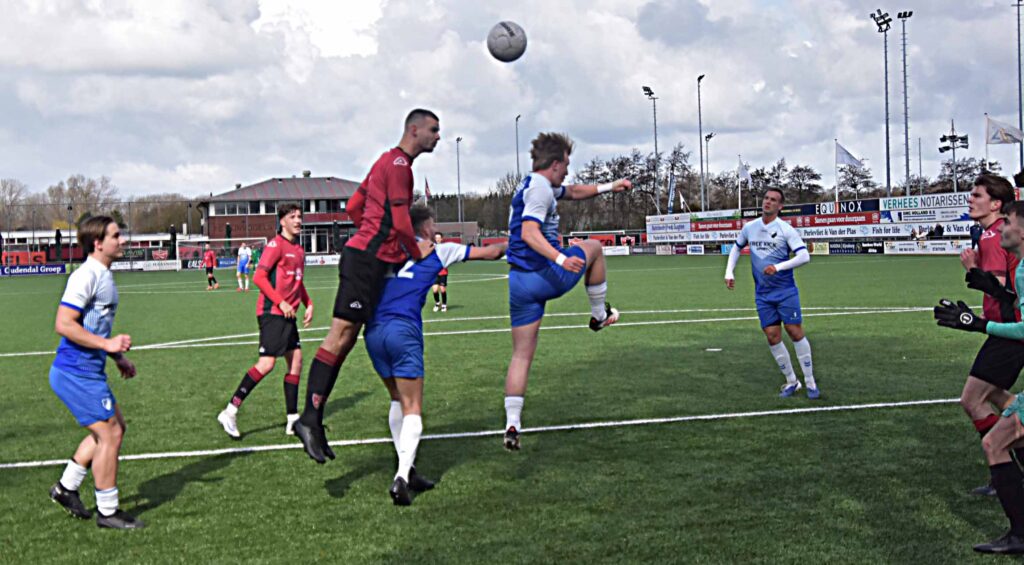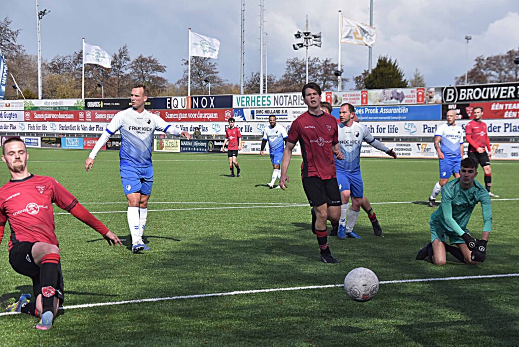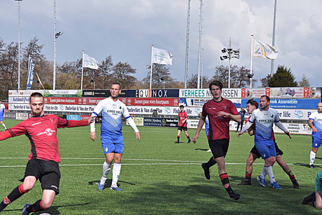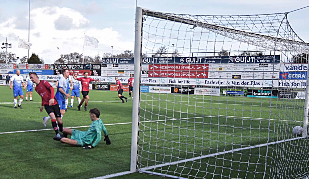 Het optreden tegen Duindorp SV mag als eenzijdig worden bestempeld. De gastheren waren heer en meester in eigen huis. De eerste treffer hing al vroeg na een assist van Daan Luyten en de afwerking van Leroy den Haan. De bezoekers leken binnen de minuut het antwoord te hebben maar verprutsten een opgelegde kans voor open doel. Daarna was het rood-zwart wat de klok sloeg al duurde het een klein half uur voordat Pelle Bouma van dichtbij kon binnen jassen achter de kansloze Rick de Jager. Voordien hadden Daan Luyten (naast) en Mike Zwijnenburg (keeper) ook al goede mogelijkheden aan zich voorbij laten gaan. Noch voor de break werd de score opgevoerd naar 4-0 dankzij goals van Niels Meyvogel en Paul Melissen. Sommige aanvallen waren van een mooi gehalte,