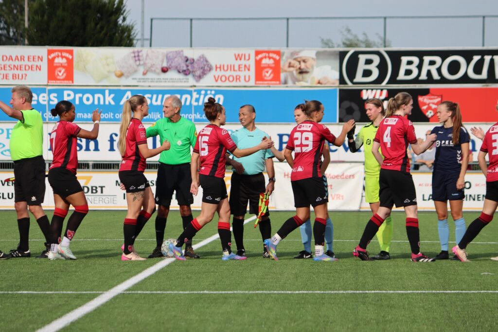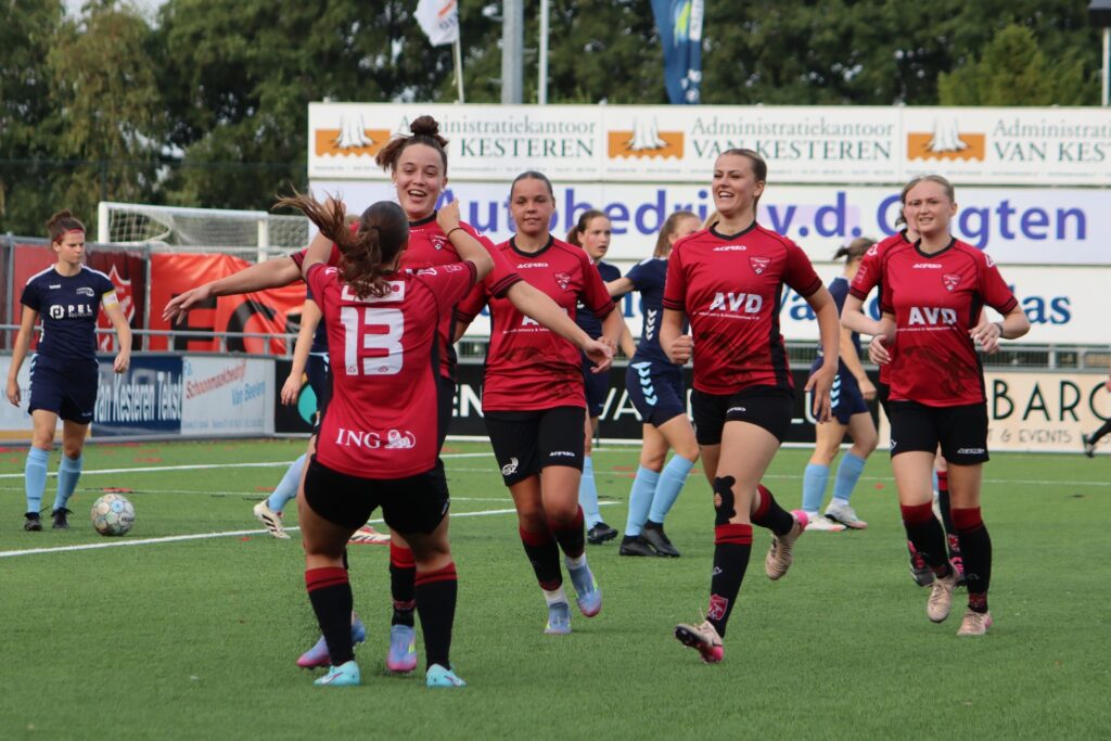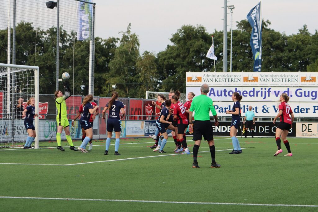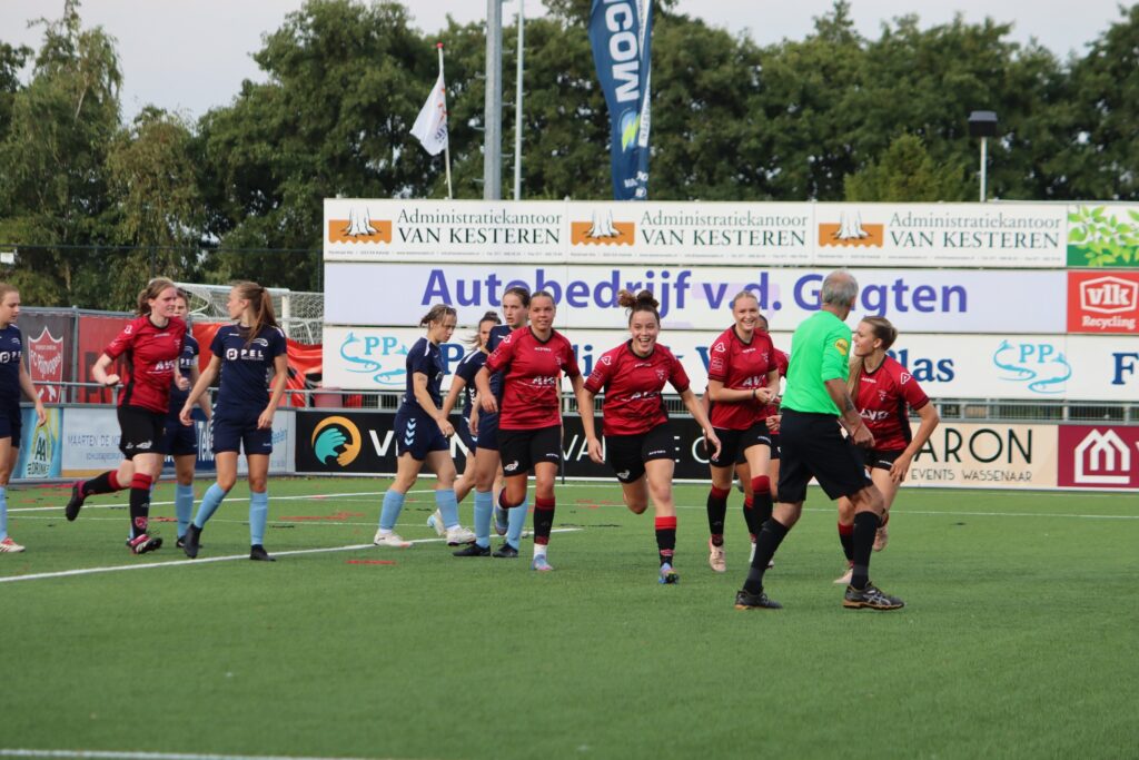 In de rust hebben we een paar puntjes op de i gezet, en we kwamen agressief uit de kleedkamer. Al in de 46e minuut werd de stand gelijkgetrokken: Celia kopte raak uit een corner en bracht ons op 1-1. Nog geen twee minuten later was het Jeanny die na een snelle rush haar directe tegenstander aftroefde en de 2-1 binnen schoot.