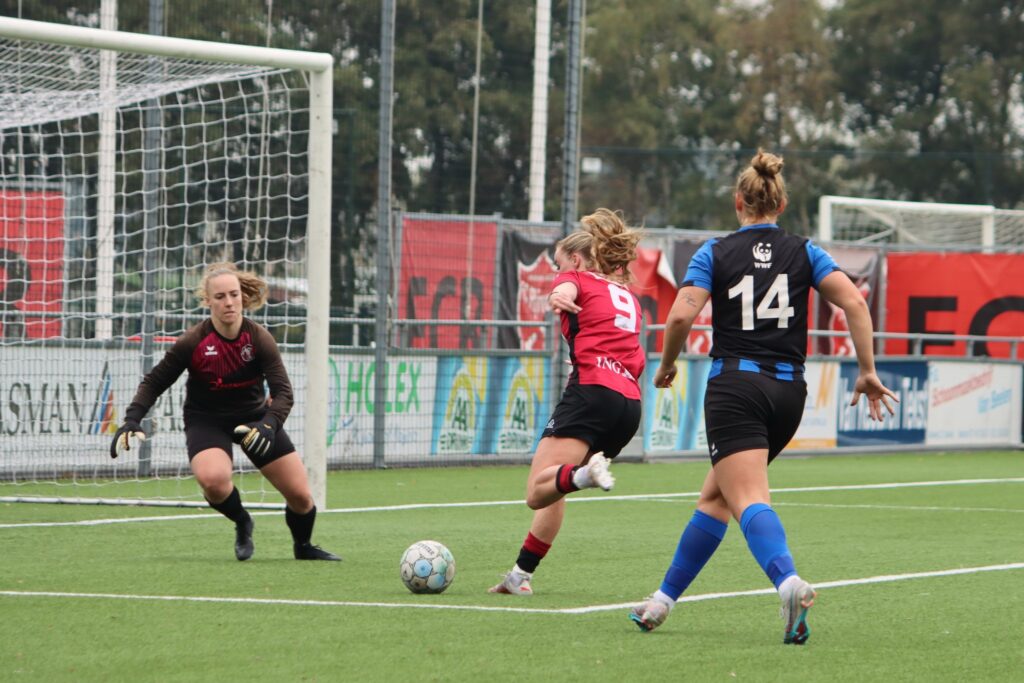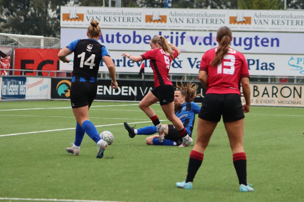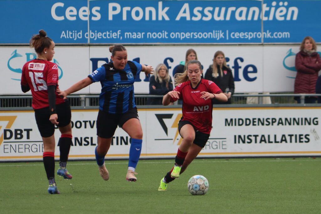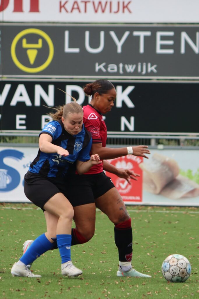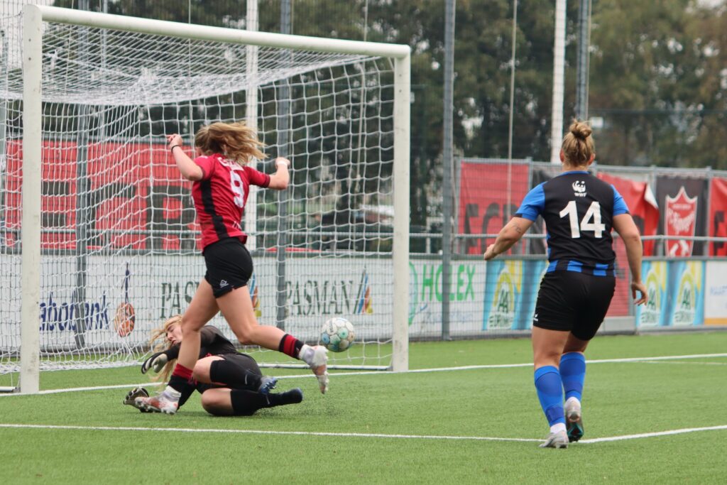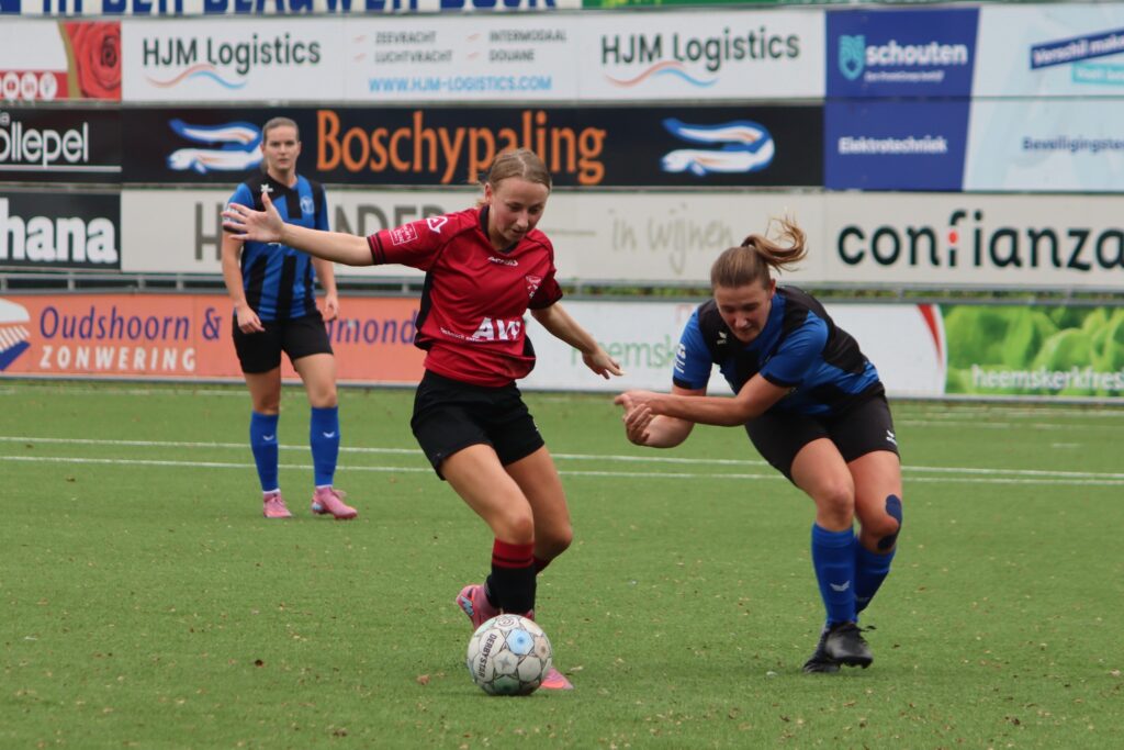 Vanaf het eerste fluitsignaal namen we het initiatief. In de eerste twintig minuten waren we duidelijk de bovenliggende partij en creëerden we maar liefst vijf honderdprocentkansen. Helaas wist de keepster van ACV ze allemaal knap te keren. In de 16e minuut brak Celine eindelijk de ban. Met een prachtige krul in de kruising zette zij ons verdiend op een 1-0 voorsprong.
